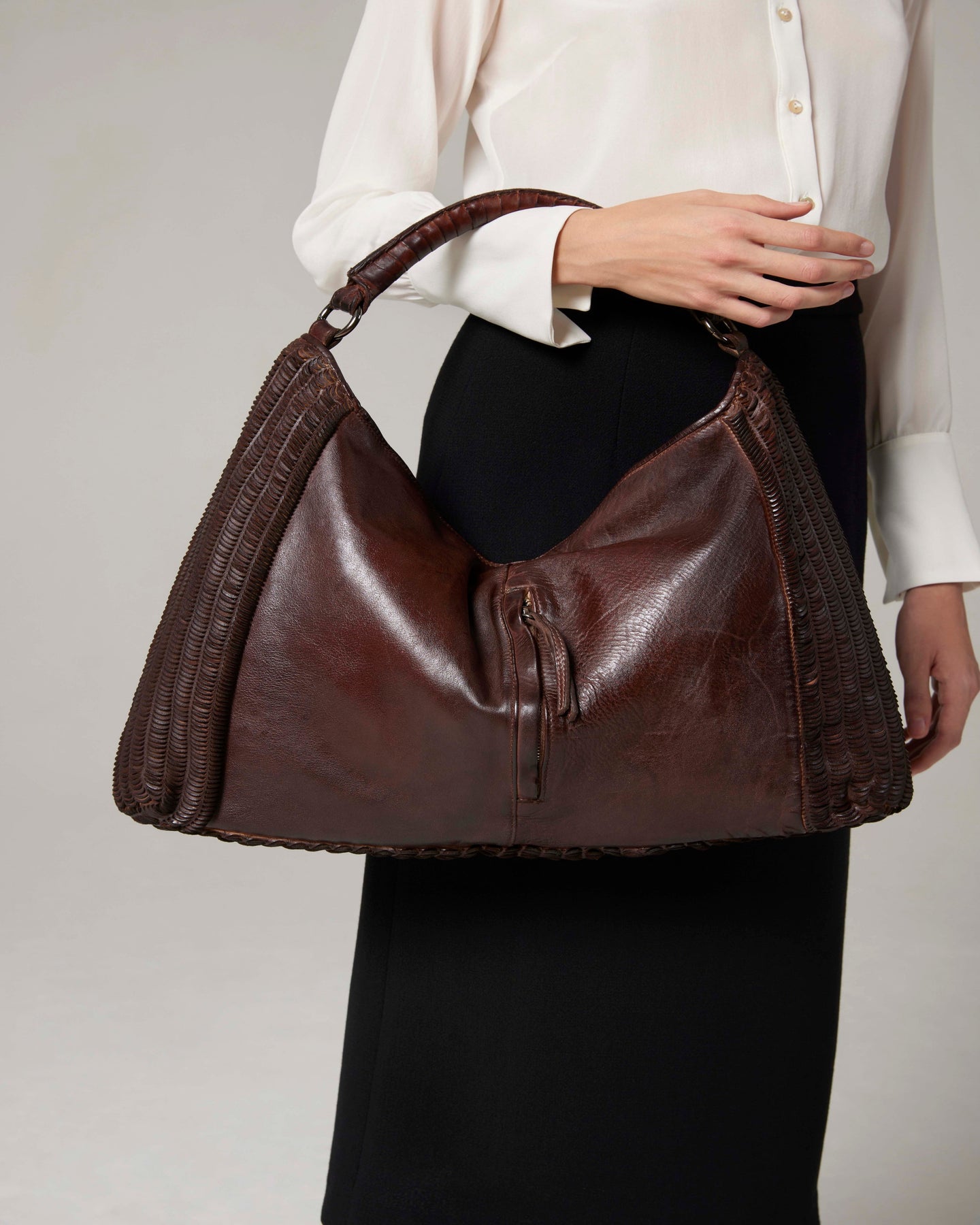 Borsa Reptile’s House in pelle decorata al laser in una calda tonalità crema.
