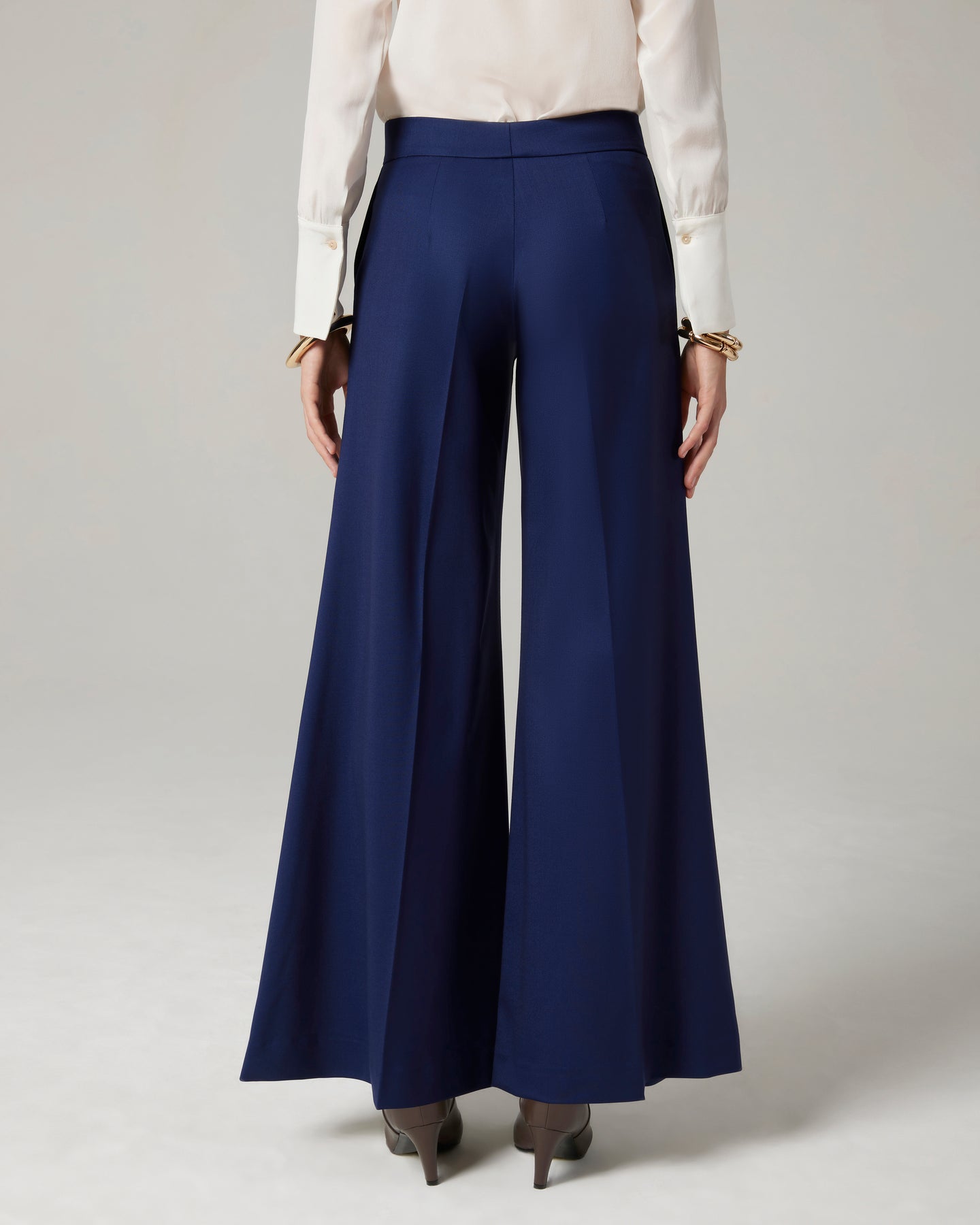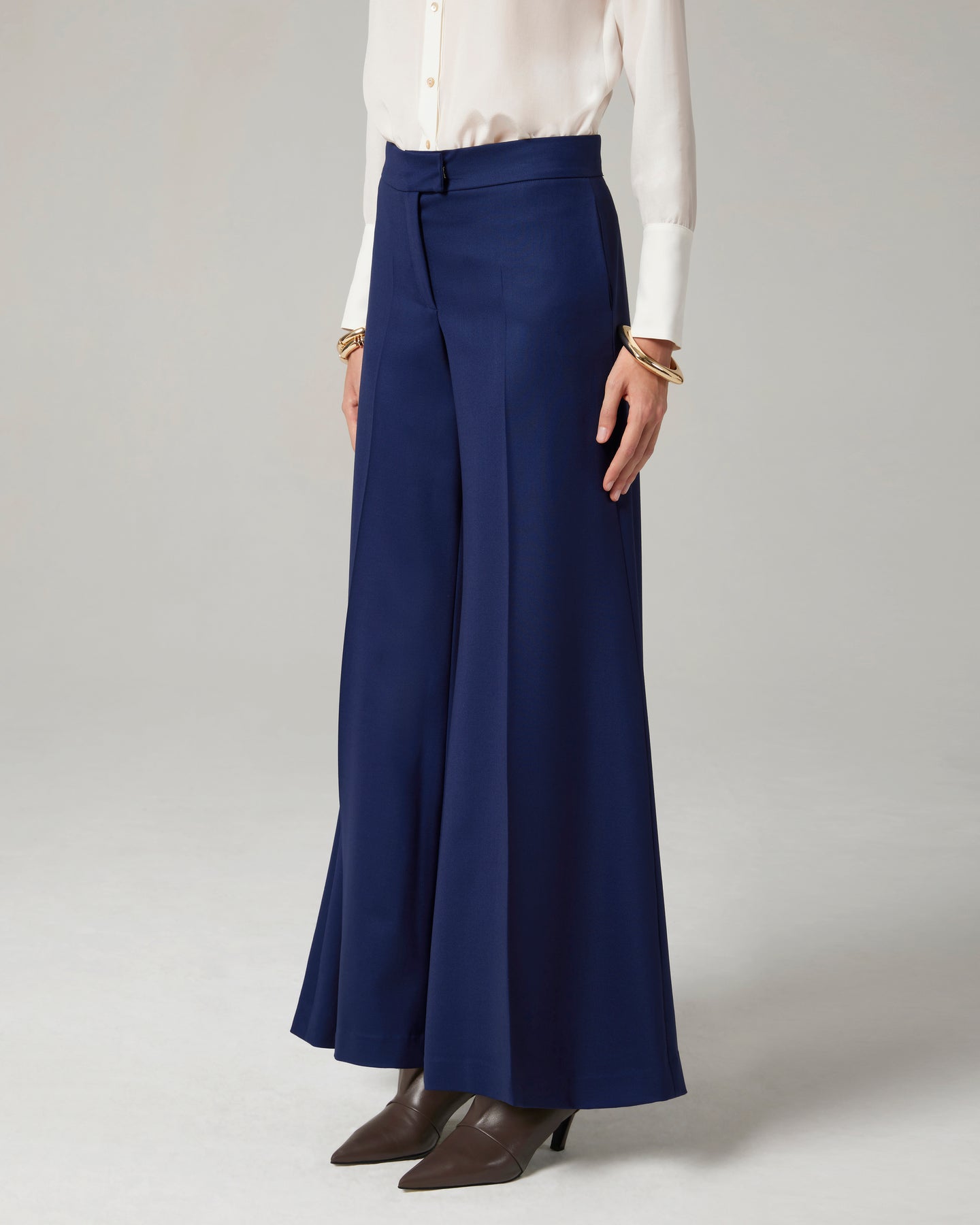Il nostro iconico pantalone Max a zampa, dalla vestibilità perfetta. Qui in saglia di lana elasticizzata.